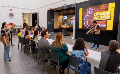 As visitas mediadas acontecem em dois momentos, às 11h30. As oficinas acontecem das 14 às 16h e às 15h, além da ação integrada com a programação do Química Faz Bem, evento que ocorre no dia 18/06, a partir das 13h.